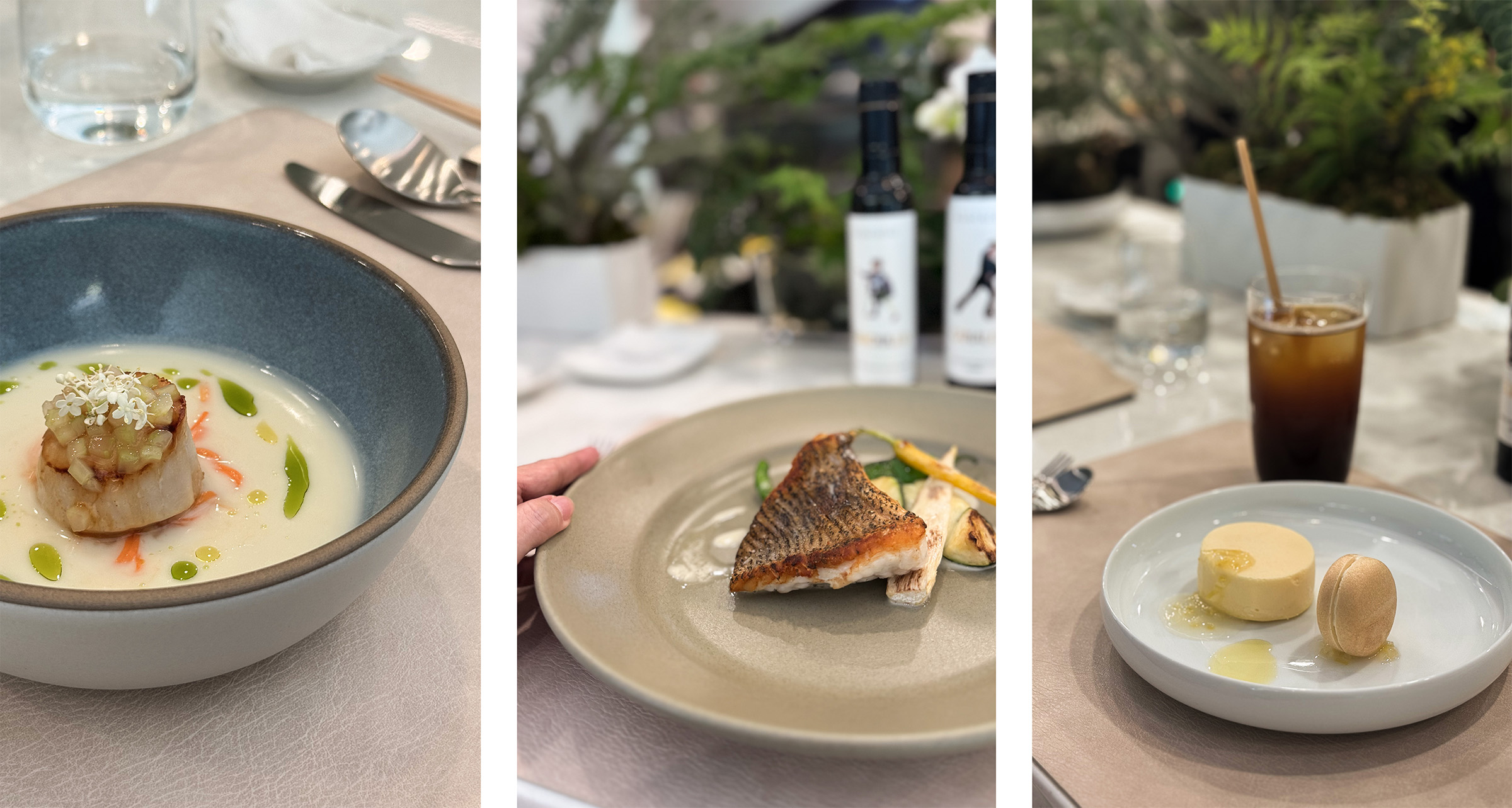 演奏區傳來鋼琴與小提琴交織的旋律,音樂輕盈,不打擾對話,反而像是時間的延伸。空氣中瀰漫著一抹淡淡香氣,是特別為空間挑選的香氛,與料理一同構成這場溫柔的饗宴。當你坐下來享用美食時,不僅僅是味覺的盛宴;還有香氣、觸感以及當下整體的感受。