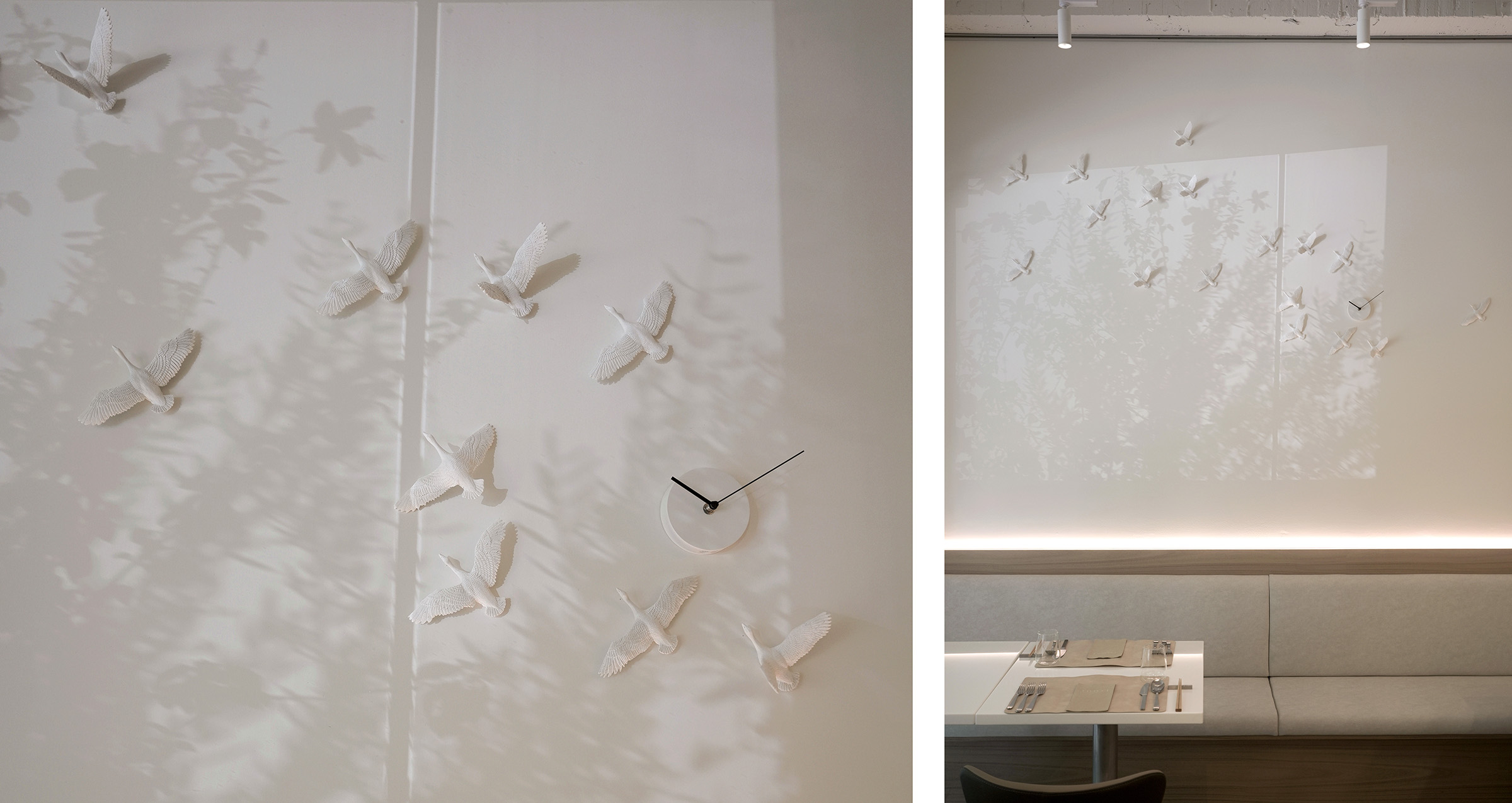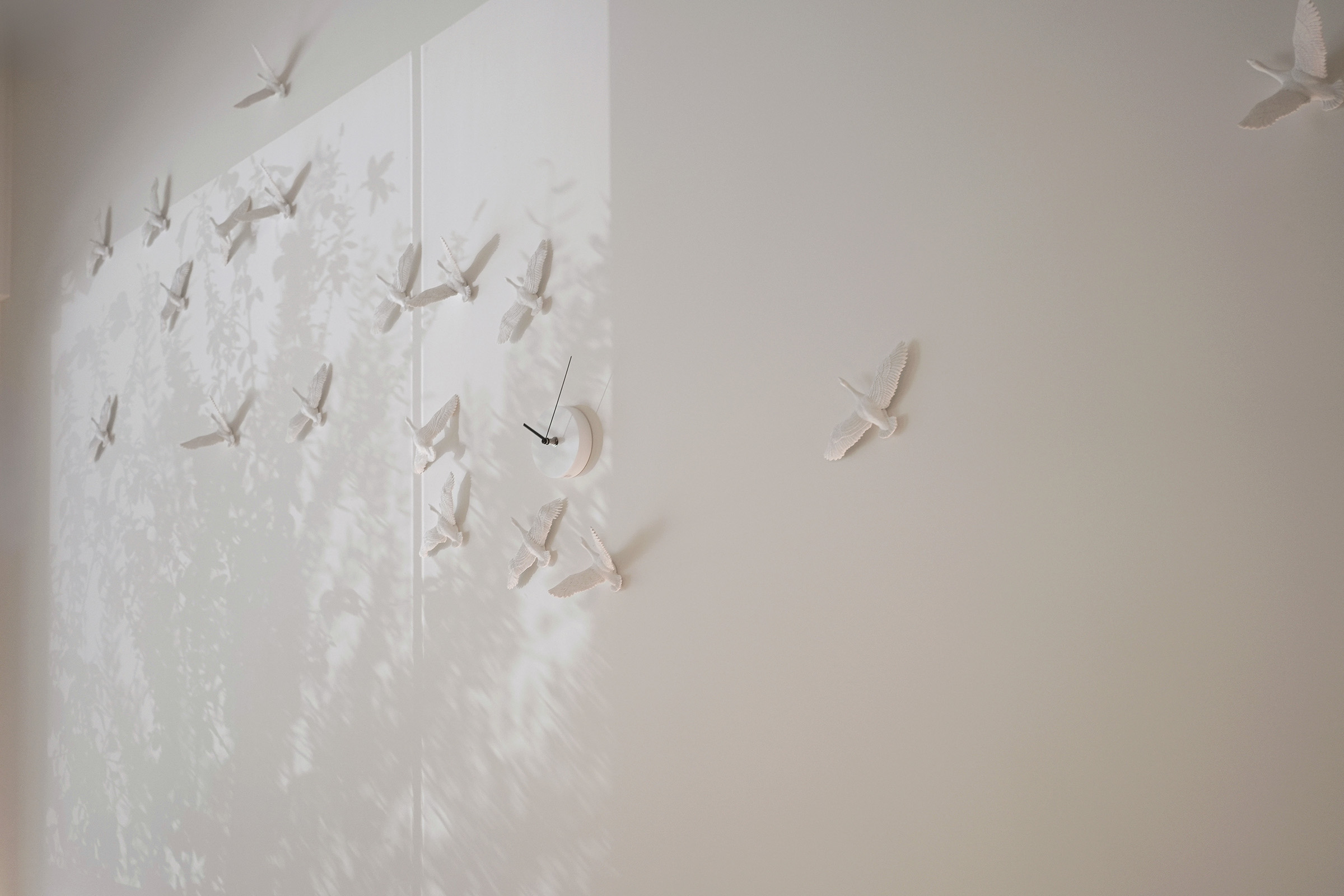 這次,haoshi 的候鳥時鐘飛進了台北永康街,在 rooTi 的牆面上描出一種關於「時間正在流動」的風景。當陽光灑落,鳥群的影子也悄悄飛了起來,為這安靜的空間添上一抹詩意與節奏。