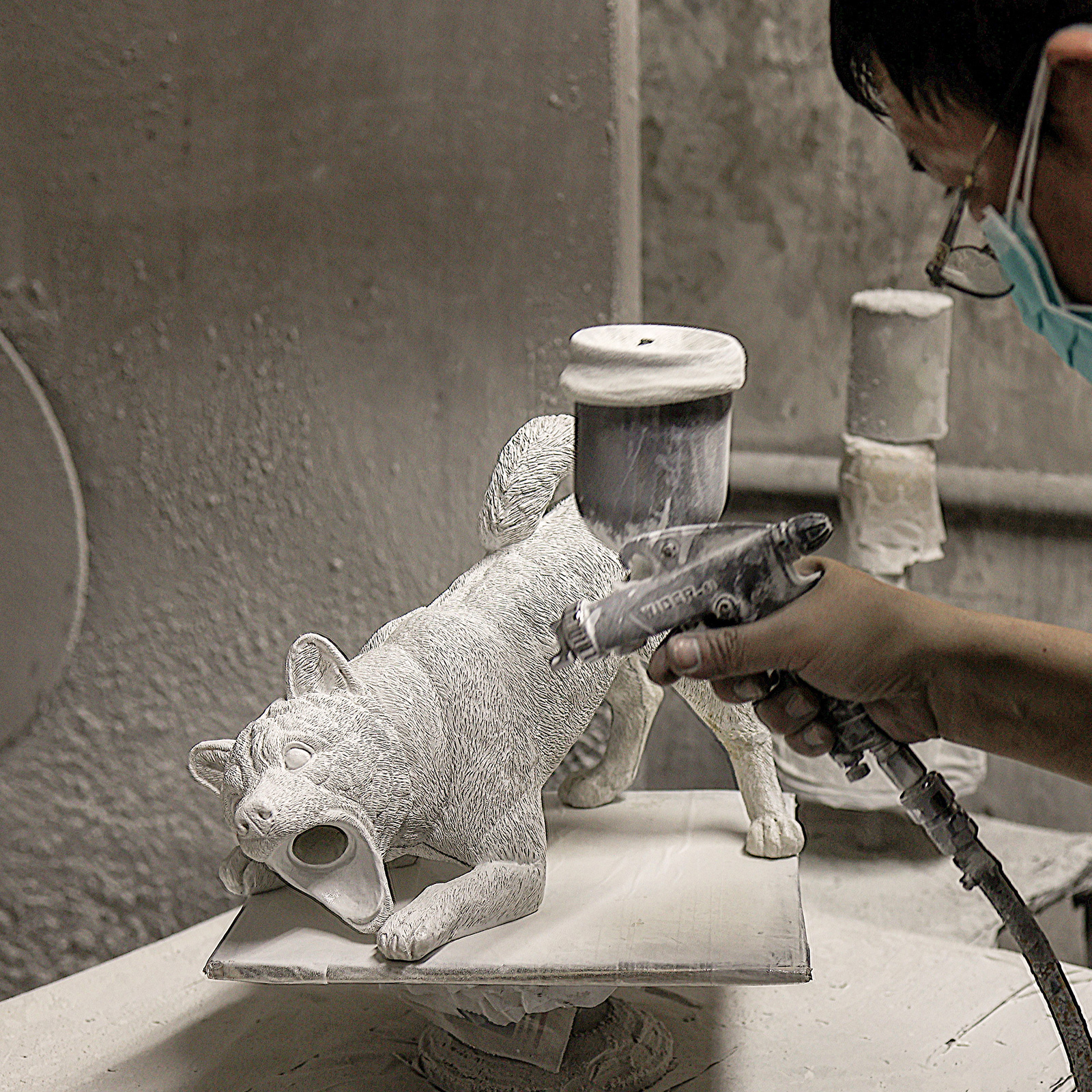 每一個柴犬燈都是經由師傅仔細的手工修整及打磨,每一件都是獨一無二的,沒有一件是100%相同,在噴漆之前,會再次檢查柴犬燈的平整度及美學美感。