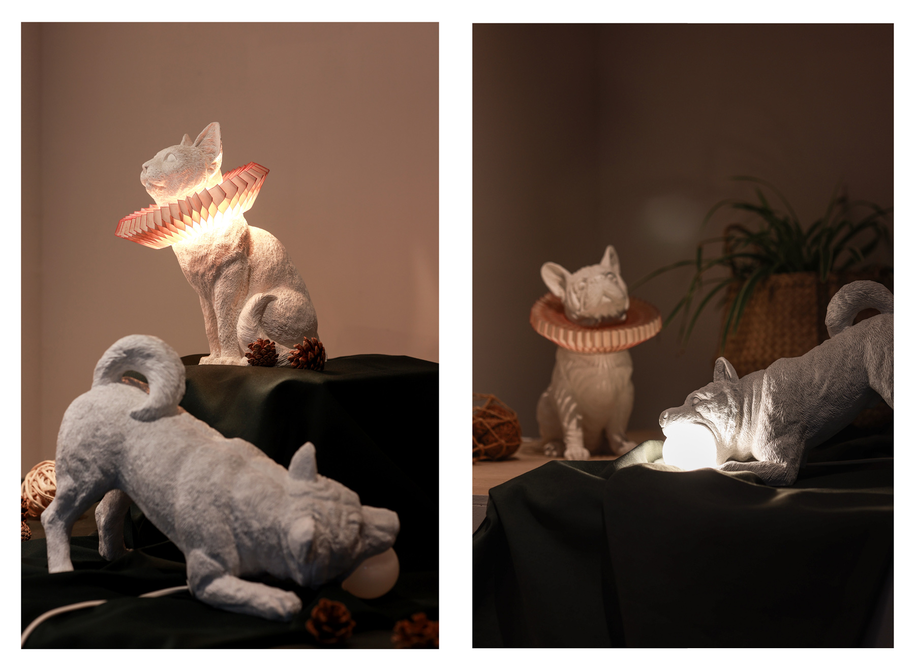 獨特造型的貓咪燈和狗狗燈更是在燈具的領域裡獨樹一幟。它們不僅改變了燈的外觀,更像是一件藝術品,散發著治癒的光暈。
