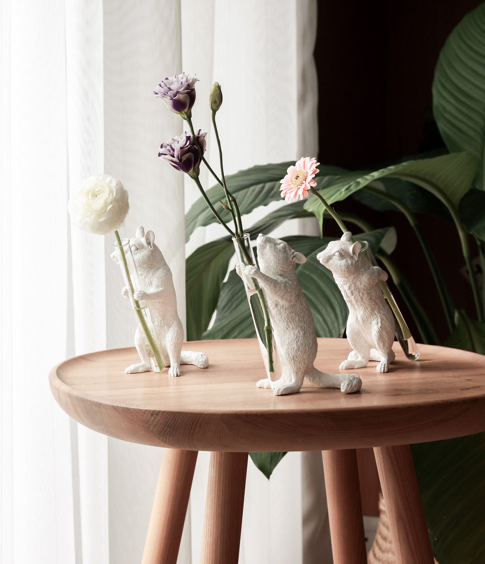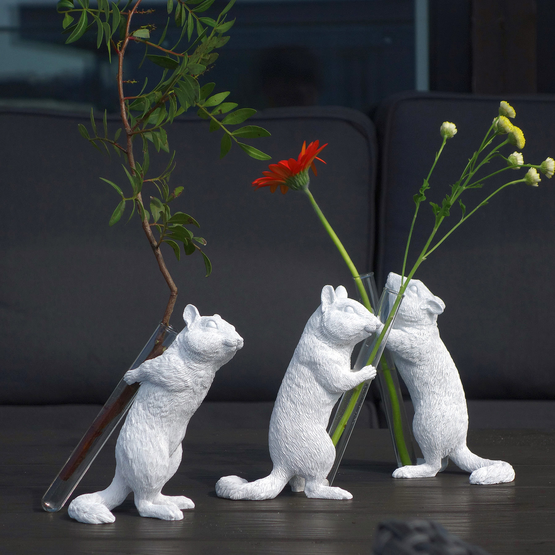haoshi花栗鼠花器,裝載植物系的療癒,搭配透明試管,可隨心採集馥郁花朵,抑或是翠綠枝葉,一同擺放生動姿態。