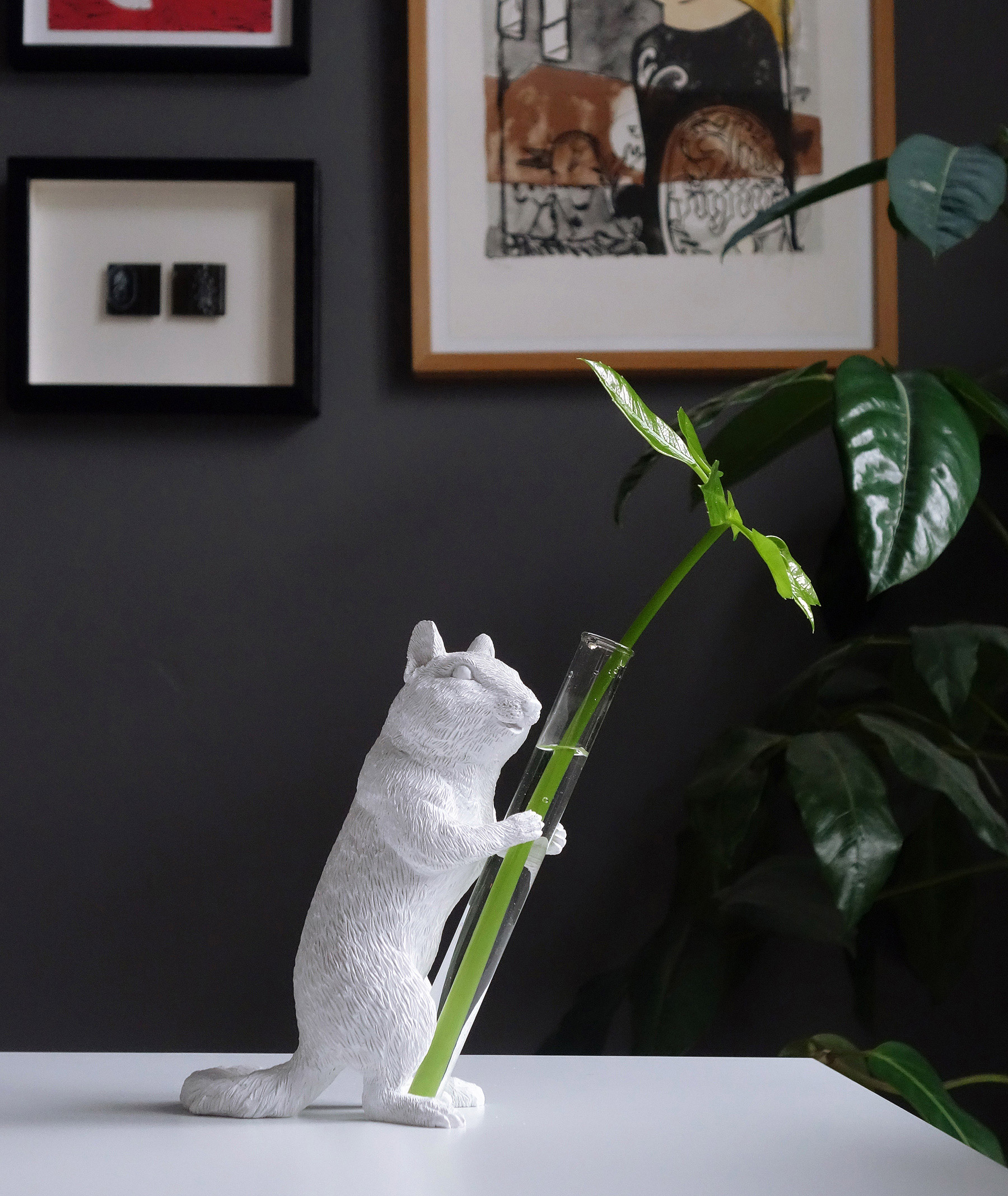 haoshi花栗鼠花器,裝載植物系的療癒,搭配透明試管,可隨心採集馥郁花朵,抑或是翠綠枝葉,一同擺放生動姿態。