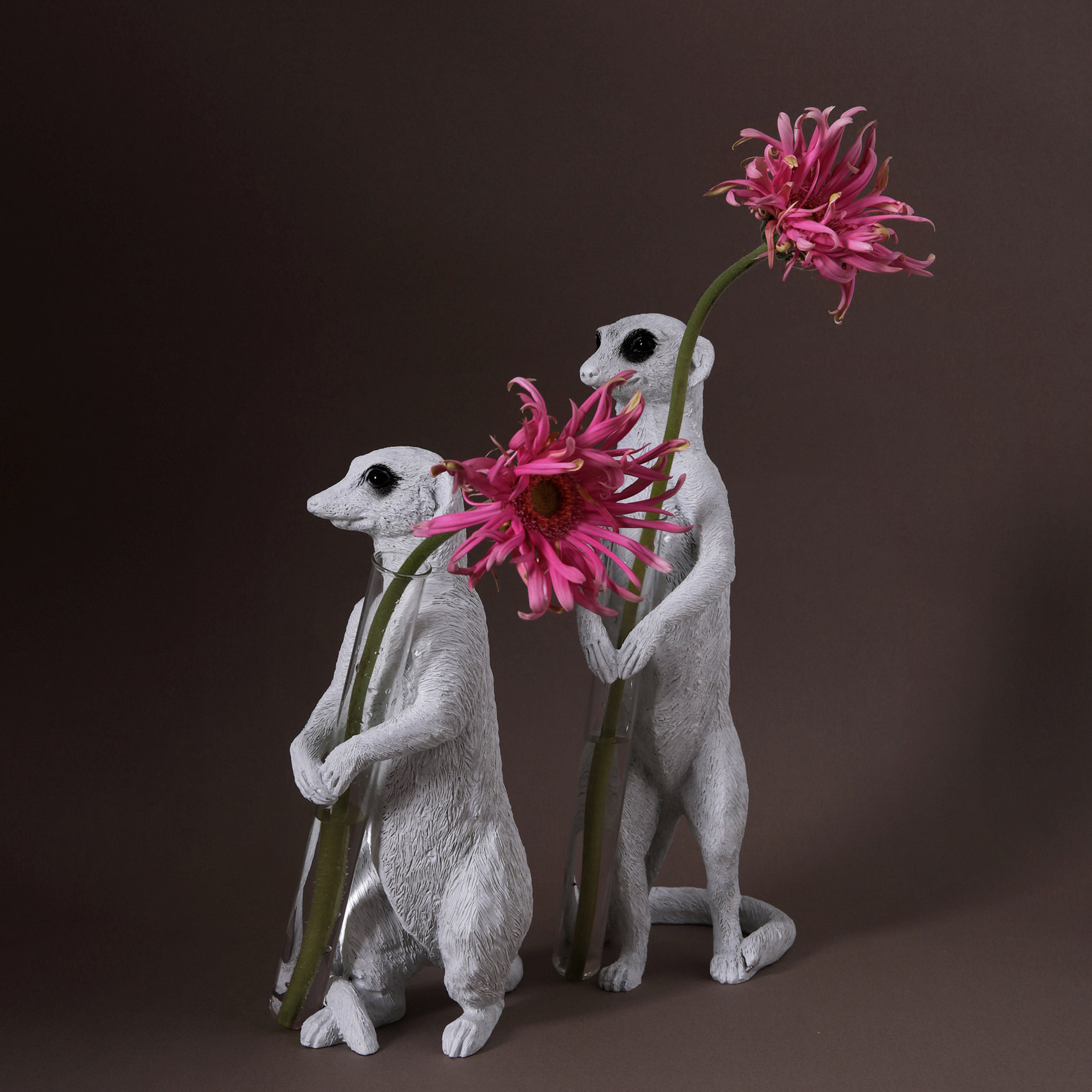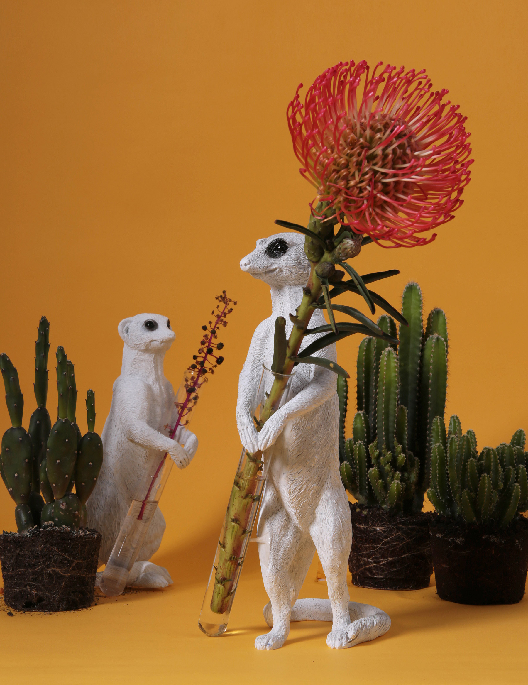 狐獴擁有強壯彎曲的爪子,可穩固托住花束,讓您自由變換插花風格,隨心打造不同氛圍。不論是喜愛大自然風格,還是想擁有一款話題十足的裝飾品,這款花器都能完美滿足您的需求!