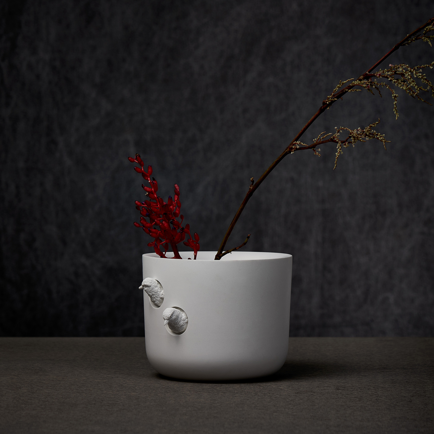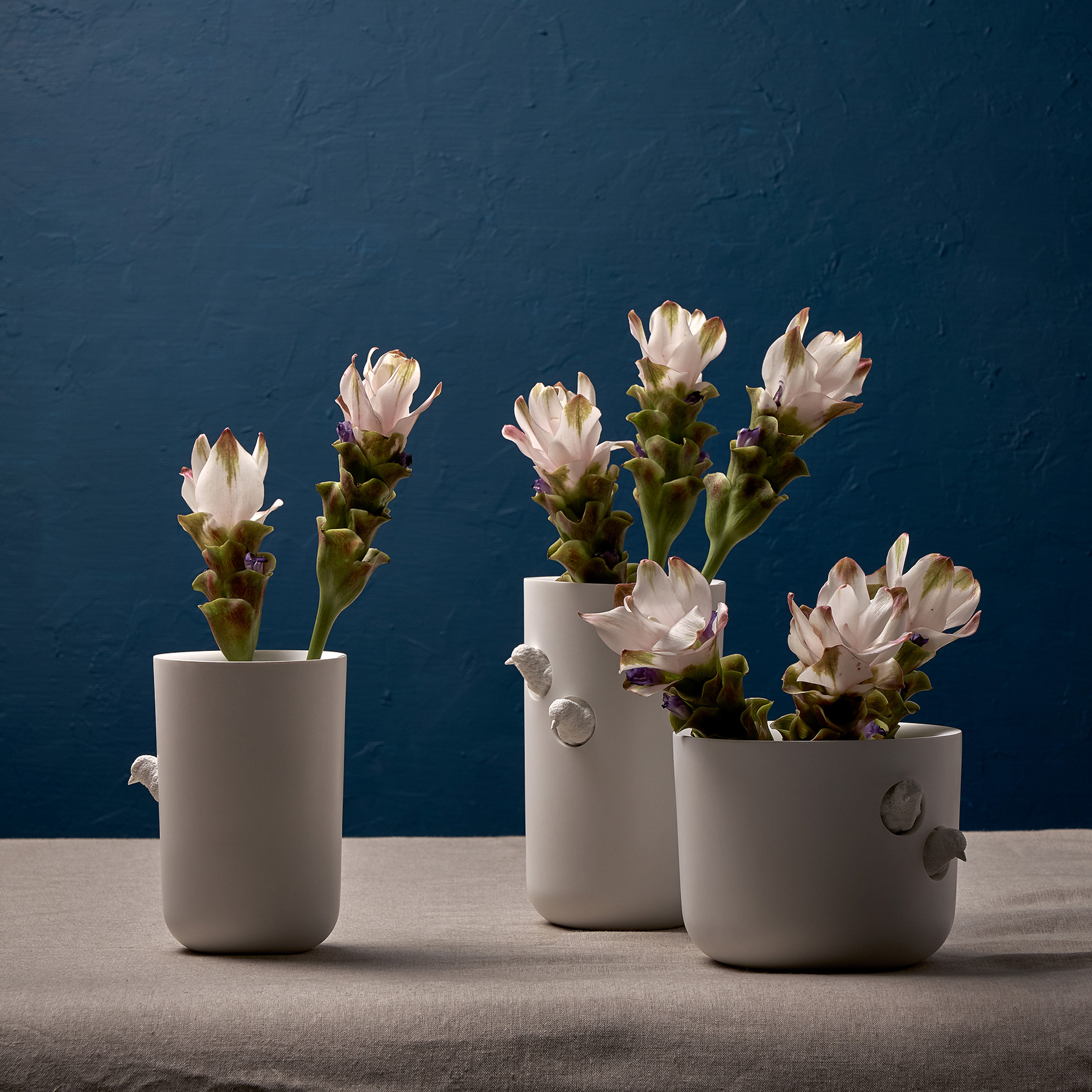 haoshi對純白的熱情及自然的想像在麻雀花器中得到了充分的體現,可以單純的欣賞它們作為雕塑裝飾,也可以插上各式各樣的花材,讓它們有不同的姿態綻放。有三種不同的尺寸,可滿足您插花的需求。