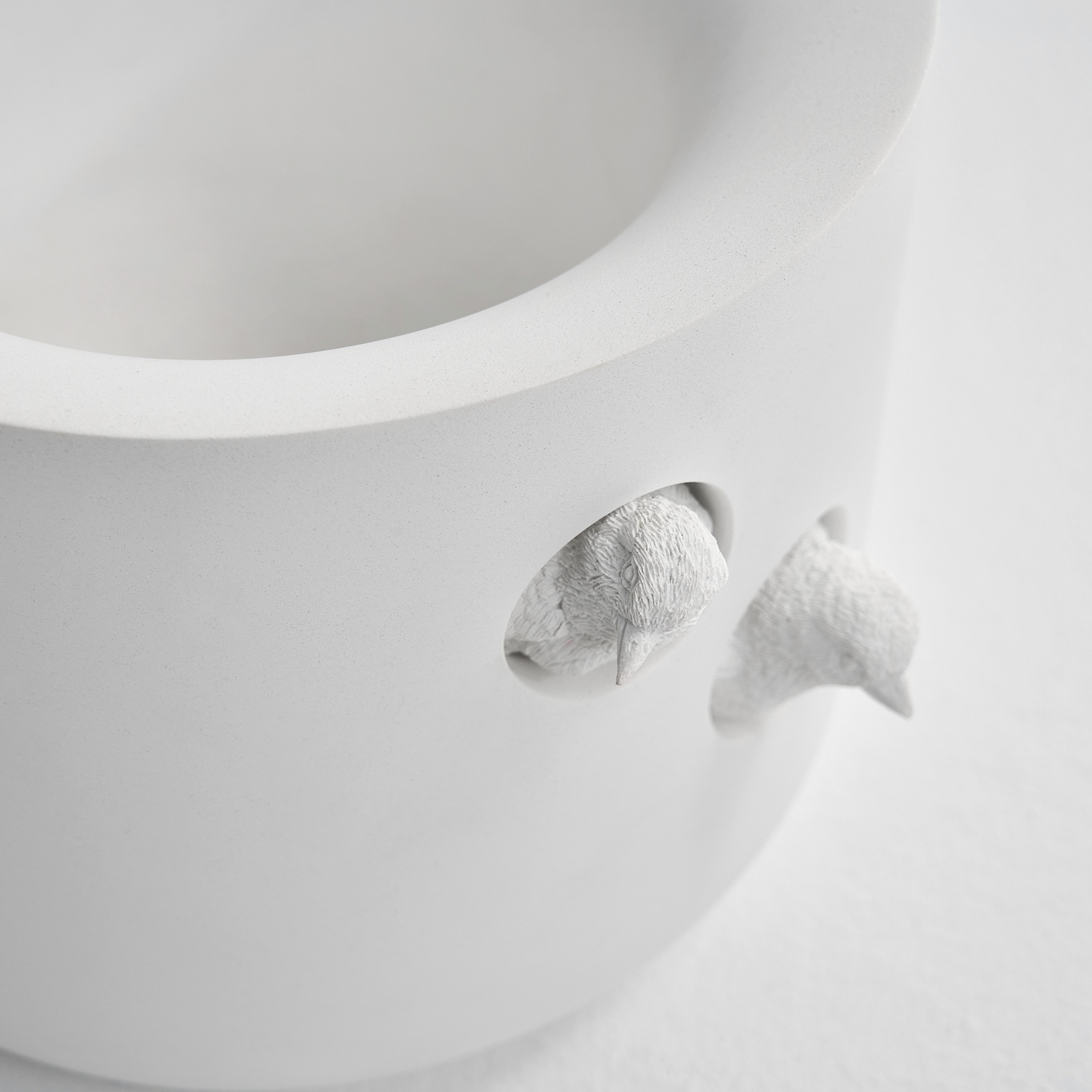 順瓶身而下,小淘氣雀鳥們探頭靈動,合奏出一束生命的輕快之歌。 良事設計的麻雀花器,以簡約成全豐饒的喜悅。為你的日常細細收藏無數繽紛與芬芳。