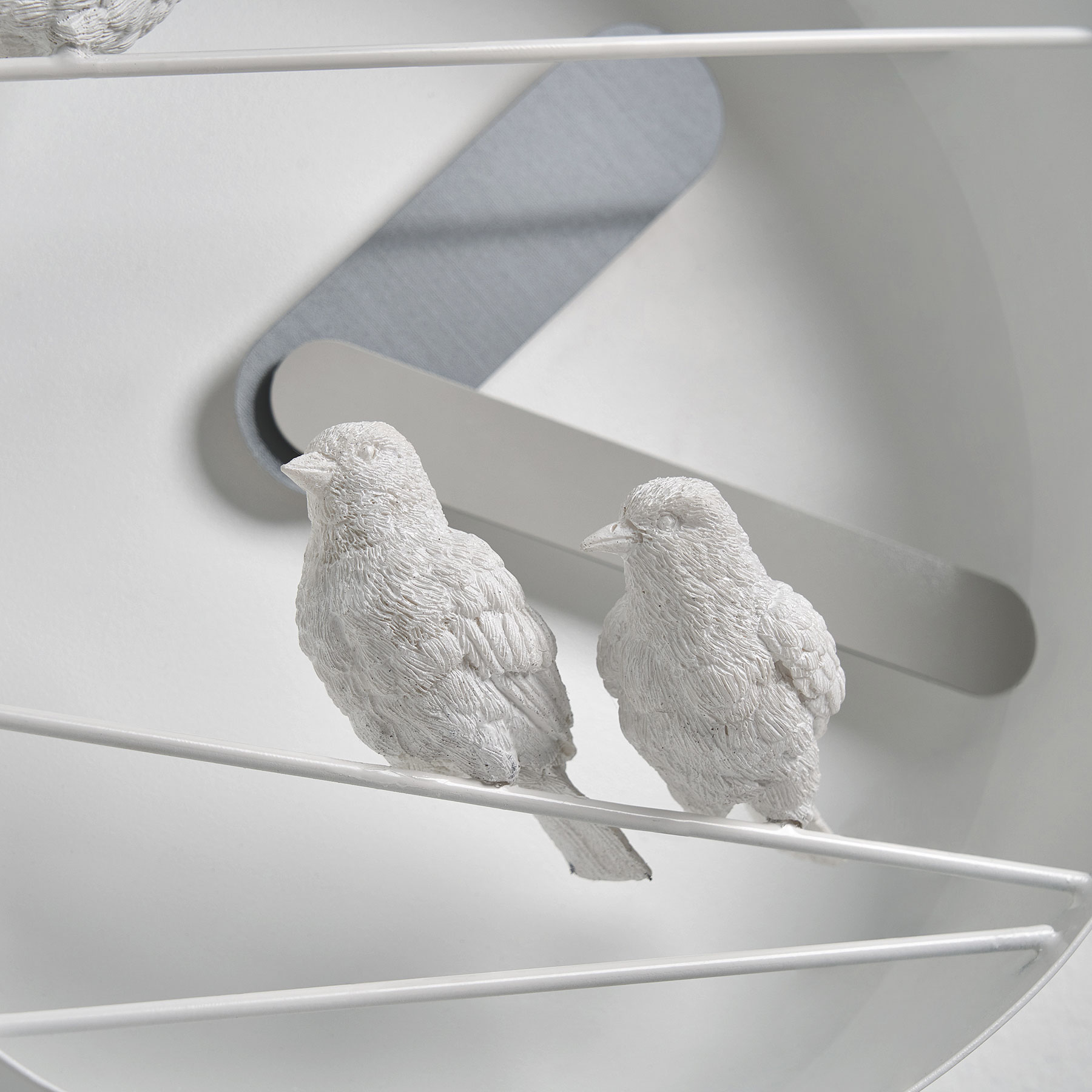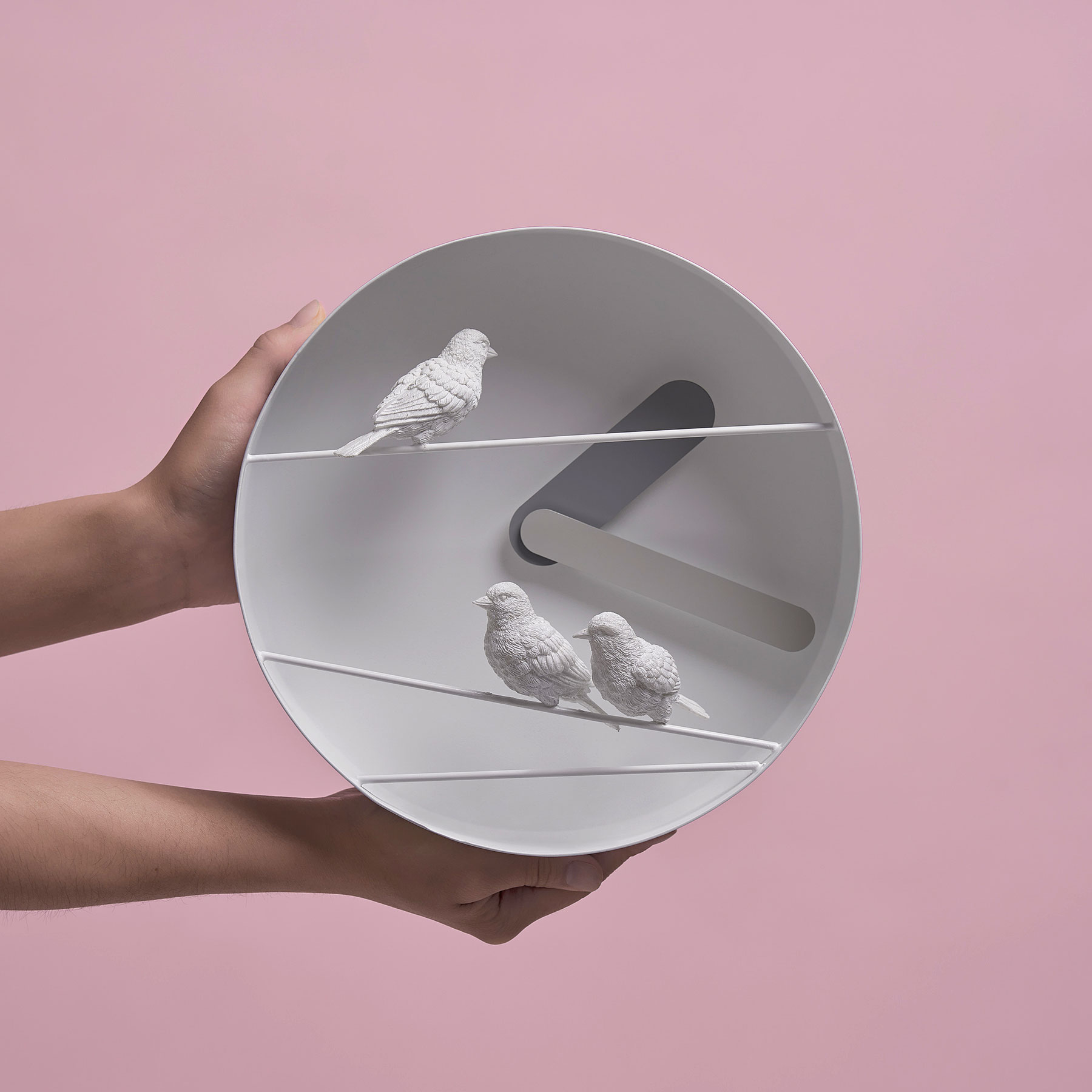 時間,是悠靜是美好。淨白的鐘面之前,象徵著都市風景的線條上棲息著活潑的麻雀。日光灑落,隱約透露細緻的手雕細節,在剪影之間,無數個溫馨故事不斷在下一刻等待。