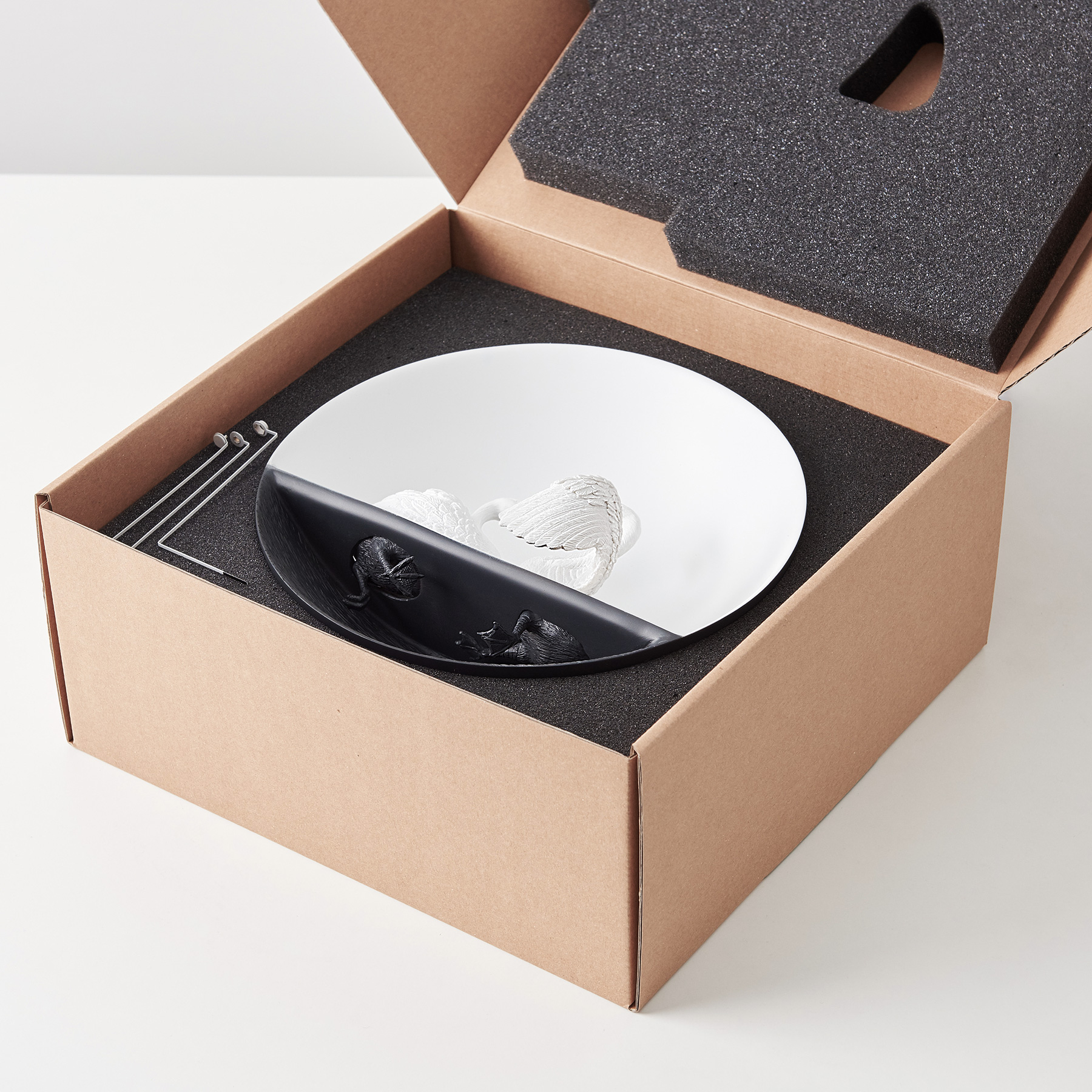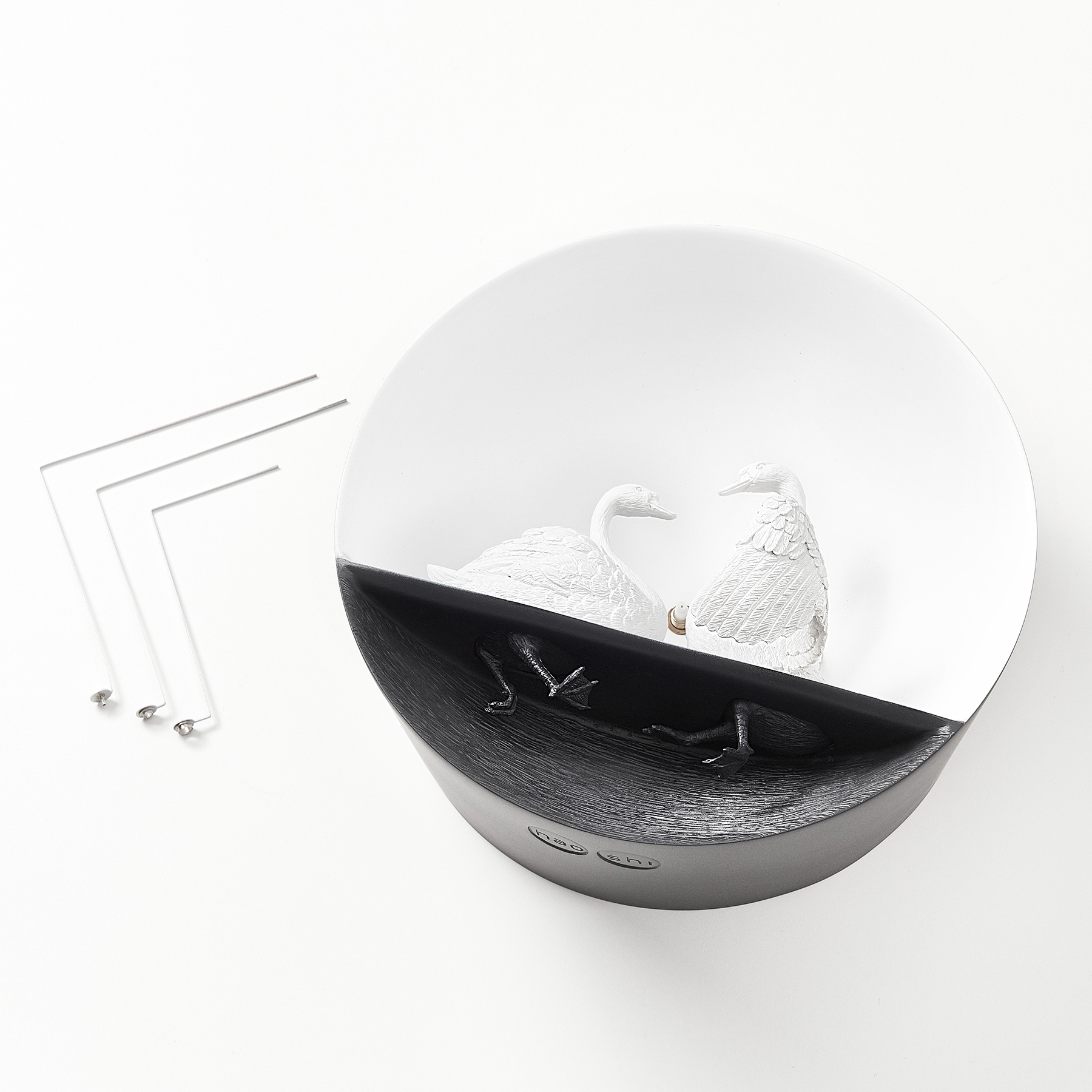 良事設計以優雅的水鳥形象,勾勒出一幅圓滿的愛情風光,紅色秒針象徵著戀人同步的心跳,每一次顫動都是戀愛的中原標準時間。 戀人攜手構築生活的樣貌與默契,則在水面之下凝止,那份為了另一半奮力向前的決心,也同樣被細細刻印。